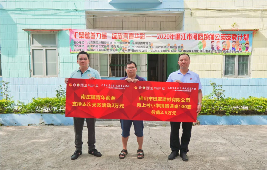 7月27日,“匯聚慈善力量 綻放青春華彩”—— 2020年廉江市河唇鎮(zhèn)蒲公英支教計劃活動正式開營,在上村小學(xué)舉行了愛心捐贈儀式。捐贈儀式上,佛山市迅亞建材有限公司向上村小學(xué)捐贈了100套嶄新的課桌,以實際行動支持本次支教項目和優(yōu)化學(xué)校基本辦學(xué)辦公條件,彰顯了我司的社會責任和擔當。